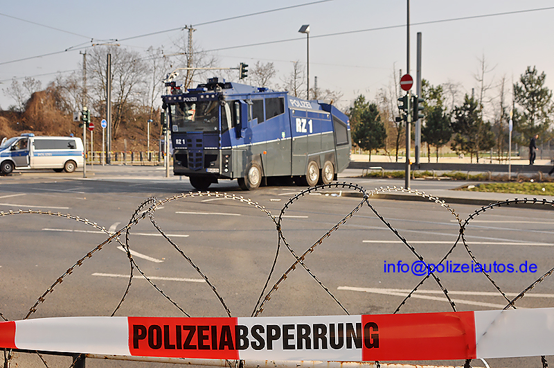 | Beschreibung: | Auch die Bundespolizei war beim Blockupy-Einsatz 2015 vielfach vertreten; hier sperrt ein Wawe 10 - RZ 1 - eine Kreuzung. Foto: Gottung |