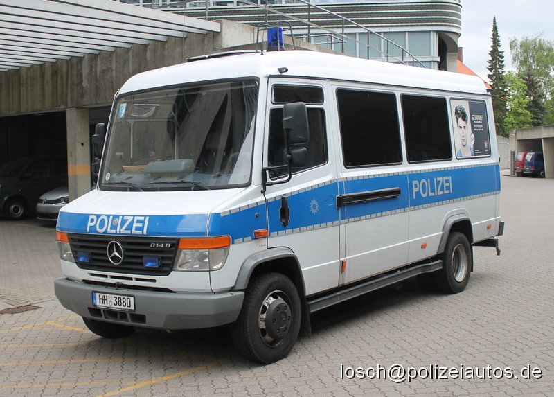 | Beschreibung: | Bundeseinheitlicher Gruppenkraftwagen (Grukw V) der Bereitschaftspolizei Hamburg, ausgebaut von Wietmarscher Ambulanz und Sonderfahrzeugbau. Das ehemals grün/weiße Fahrzeuge wurde inzwischen der aktuellen Farbgebung angepasst. |