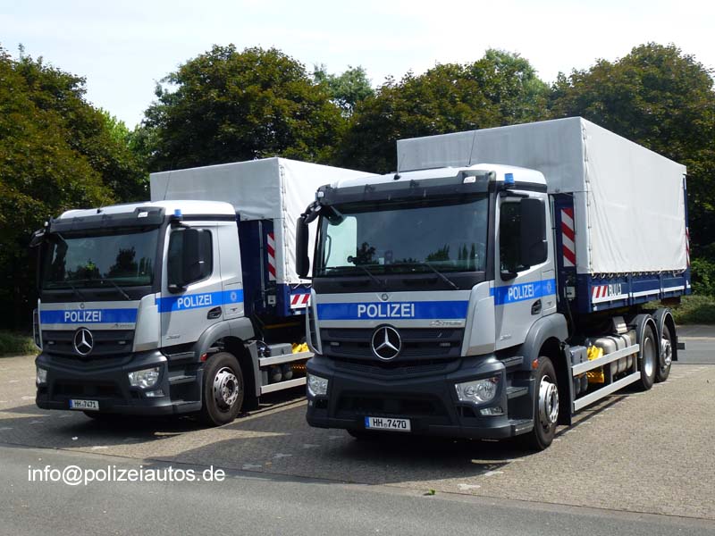 | Beschreibung: | Wechselladerfahrzeug (WLF) der Polizei Hamburg, hier beladen mit jeweils einem austauschbarem Ladungsträger (ATL) der Bundespolizei in Blumberg. Diese Fahrzeuge wurden mittlerweile auch links und rechts an der Dachkante des Führerhauses mit einer LED-Kennleuchte versehen. HIER tragen sie noch keine LED-RKL. |