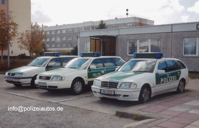 | Beschreibung: | Funkstreifenwagen der Autobahnpolizeidienststelle Dummerstorf. Audi A6 Avant (C4), Mercedes-Benz C-Klasse-T (W202), und VW Passat (B4) Variant. Die Aufnahme entstand zwischen 2000 und 2003. Foto: Ingo Hoffmann |