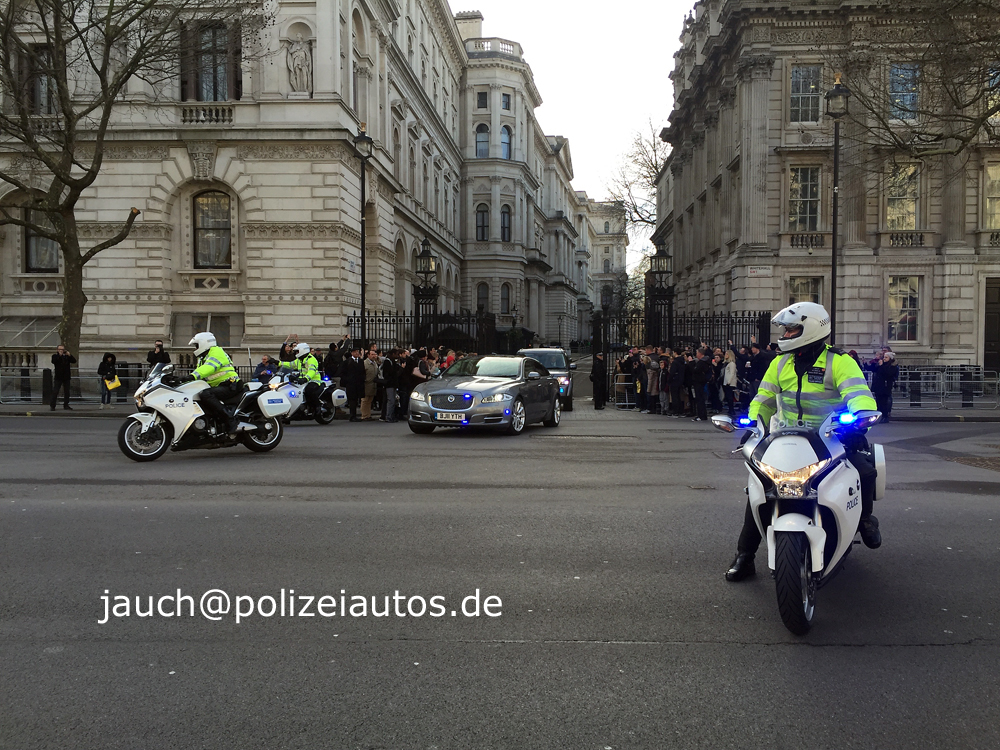 Besuch in der Downingstreet 10 und Begleitung durch die Special Escort Group ( SEG) von der Metropolitan Police.