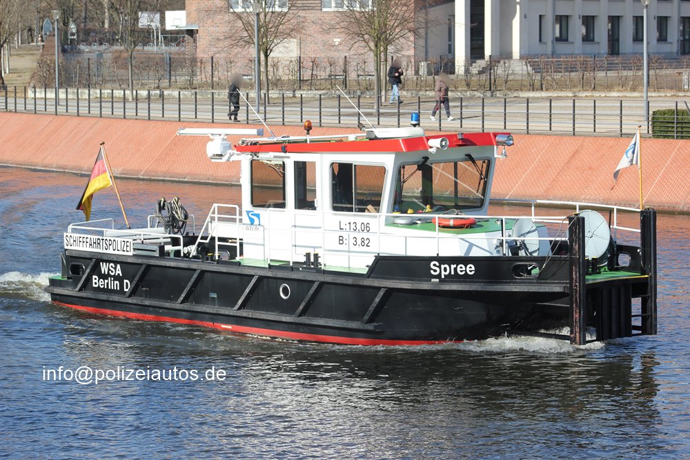 | Beschreibung: | Schub- und Aufsichtsboot SPREE des Wasser- und Schifffahrtsamtes Berlin. Technische Daten Länge: 13,06 m Breite: 3,82 m Tiefgang: 0,95 m Antriebsleistung: 144 kW Motor: Deutz BF 6 M 1013 ECP Antrieb: North American Marine Jet 150 (Strahlantrieb). Fotos und Infos: Stefan Fleischer |