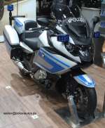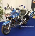 Funkkrad BMW R 1200 RT, hier u.a. mit niedrigem Funkkasten, ausgestellt auf der GPEC 2014. |