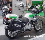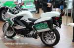 Funkkrad, ausgestellt auf der GPEC 2014. Während die hier abgebildete linke Fahrzeugseite mit einer grünen Folie und POLIZEI-Schriftzug beklebt war, wurde die rechte Seite für den englischsprachigen Raum mit einer schwarzen Folie und POLICE-Beschriftung versehen. |