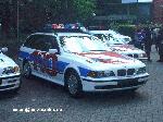 Studie der BMW AG unter der Leitung des polizeitechnischen Institutes der Polizeiführungsakademie Münster anläßlich einer Fachtagung zur Erhöhung der Eigensicherung. Zu beachten sind die verdeckt eingebauten Fronträumer im Grill, Zusatzleuchten in den Aussenspiegeln sowie die Signalleuchte an der Sonnenblende auf der Beifahrerseite. |