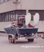 Hilfsstreifenboot der nds. Wasserschutzpolizei Technische Daten: Baujahr: 1969 Besatzung: 1 Mann Fabrikat: Arko Gewicht: 585 kg mit vollem Tank Antrieb: VW-Industriemotor Typ 124A mit 54 PS Tiefgang: 0,10 m Geschwindigkeit: ca. 40 km/h auf dem Wasser, ca. 70-120 km/h auf Schnee / Eis. Verwendung: Streifen- und Einsatzfahrten während der Wintermonate auf dem Steinhuder Meer.