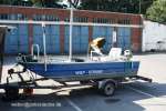 Bauart: Aluminium Arbeitsboot AL.SEB 400 Baujahr: 2000 Bauwerft: Josef Reich GmbH, Petersaurach Länge ü.A.in m: 4,00m Breite in m: 1,55m Motoren: 1 x Außenbordmotor Honda BF 8 LGD Leistung: 5,9 kw/8 PS Foto 4: Berthold Mund |