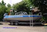 Die weiteren Daten sind nahezu identisch mit diesem Boot. Momentan ist das Boot allerdings noch nicht mit Frontblitzern ausgestattet. In der 2. + 3. Ansicht ist der "Kommandostand" noch mit einer Schutzplane abgedeckt. |