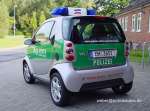 Dieses Fahrzeug der Werbe- und Einstellungsstelle des Landes Schleswig-Holstein präsentiert sich nun in neuer, silber/ blauer Farbgebung. Hier schmückt den Smart noch eine grüne Folie. |