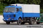 Bundeseinheitlicher Lastkraftwagen (LKW) der BePo Thüringen, mit eckiger Plane. |