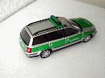 Einsatzwagen Abschnitt der Berliner Polizei. Das Modell von Kyosho erhielt einen grünen und silbernen Anstrich sowie Reflexstreifen. Der typische BMW-Spoiler für die RTK entstand aus Plastikplatten und Gips. |