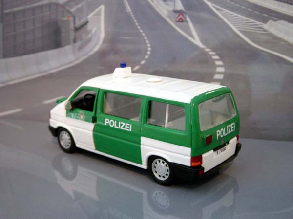 Polizei Berlin 1:43 VW Transporter T 4 Grundmodell: Schabak Maßstab:1:43 Einsatzgebiet des Vorbilds: Funkstreifenwagen Berlin6028 Aufrufe seit 14.05.2005 Standard "Funkwagen" der Berliner Polizei der 90er Jahre. Das Modell ist der T 4 von Schabak, der komplett neu lackiert und innen ausgebaut wurde. Drohm Zur Liste --- Serien- oder Sondermodelle --- Maßstab 1:43- Polizei Brandenburg 1:43- Bundespolizei (ehem. BGS ) 1:43- Polizei Hamburg 1:43- Polizei Niedersachsen 1:43- Polizei Nordrhein-Westfalen 1:43- Polizei Bayern 1:43- Polizei Berlin 1:43- Volkspolizei 1:43 Maßstab 1:87- Bundespolizei (1:87)- Feldjäger 1:87- Polizei Bremen 1:87- Polizei Hamburg 1:87- Bundesgrenzschutz (1:87)- Polizei Mecklenburg-Vorpommern 1:87...- Ordnungsamt (1:87)- Polizei Baden-Württemberg 1:87- Polizei Bayern 1:87- - Bereitschaftspolizei Bayern 1:87- - Kleintransporter (seriennah), Bayer...- - Pkw (seriennah), Bayern 1:87- Polizei Berlin 1:87- - Eigenbauten, Berlin 1:87- - Kleintransporter (seriennah), Berli...- - LKW (seriennah), Berlin 1:87- - PKW (seriennah), Berlin 1:87- Polizei Brandenburg 1:87- Polizei Hessen 1:87- Polizei Niedersachsen 1:87- Polizei Nordrhein-Westfalen 1:87- Erprobungsfahrzeuge 1:87- Polizei Rheinland-Pfalz 1:87- Polizei Sachsen 1:87- Polizei Schleswig Holstein 1:87- Polizei Thüringen 1:87- Polizei Sachsen-Anhalt 1:87- Volkspolizei 1:87- Modelle im Einsatz (Dioramen) 1:87- Zoll 1:87 Maßstab 1:160 Sonstige Maßstäbe