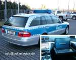 Das Modell wurde vorbildgerecht umlackiert und mit der Aufschrift "POLIZEI" versehen. Wie beim Originalfahrzeug wurde das Modell mit Reflexstreifen ausgestattet. Desweiteren wurde eine Hella RTK-Blaulichtanlage, eine Funkantenne und die entsprechenden Kennzeichen angebracht. (Eigenbau: Neubauer)