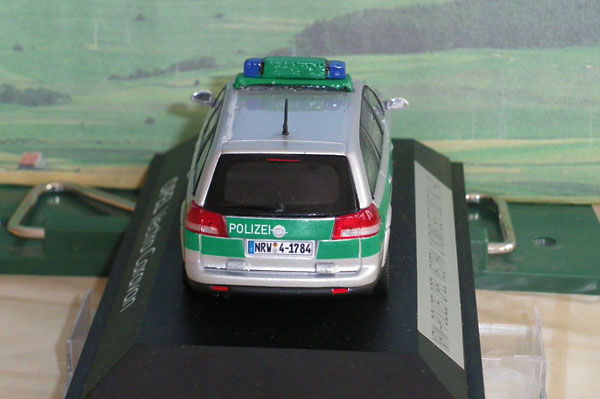 Modell: Grundmodell von Schuco der Neutrale Opel Vectra Kombi in Silber, hier wurde: die Dachrehling entfernt, längere Antenne drauf, Blaulichtbalken aus Resin und Dachplatte aus Material von Evergreen, die Decals wurden nach Org. Abbildung von DS Decals Bochum gemacht, da mein PC defekt war. Nach Rücksprache mit der Mülheimer Polizei sollte das Org.Kennzeichen drauf. Das Fahrzeug ist seit 2007 im Einsatz der PI-MH und jetzt auch im PP-Essen.
