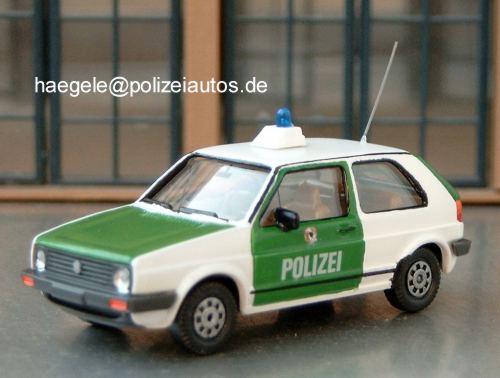 PKW (seriennah), Berlin 1:87 VW Golf II Grundmodell: (Artikel-Nr.: Wiking) Maßstab:0 Einsatzgebiet des Vorbilds: (Ehemalige) örtliche Verkehrsdienste Berlin4901 Aufrufe seit 14.10.2002 Das Modell wurde umlackiert und mit einigen Details verfeinert (Haegele). Zur Liste --- Serien- oder Sondermodelle --- Maßstab 1:43- Polizei Brandenburg 1:43- Bundespolizei (ehem. BGS ) 1:43- Polizei Hamburg 1:43- Polizei Niedersachsen 1:43- Polizei Nordrhein-Westfalen 1:43- Polizei Bayern 1:43- Polizei Berlin 1:43- Volkspolizei 1:43 Maßstab 1:87- Bundespolizei (1:87)- Feldjäger 1:87- Polizei Bremen 1:87- Polizei Hamburg 1:87- Bundesgrenzschutz (1:87)- Polizei Mecklenburg-Vorpommern 1:87...- Ordnungsamt (1:87)- Polizei Baden-Württemberg 1:87- Polizei Bayern 1:87- - Bereitschaftspolizei Bayern 1:87- - Kleintransporter (seriennah), Bayer...- - Pkw (seriennah), Bayern 1:87- Polizei Berlin 1:87- - Eigenbauten, Berlin 1:87- - Kleintransporter (seriennah), Berli...- - LKW (seriennah), Berlin 1:87- - PKW (seriennah), Berlin 1:87- Polizei Brandenburg 1:87- Polizei Hessen 1:87- Polizei Niedersachsen 1:87- Polizei Nordrhein-Westfalen 1:87- Erprobungsfahrzeuge 1:87- Polizei Rheinland-Pfalz 1:87- Polizei Saarland 1:87- Polizei Sachsen 1:87- Polizei Schleswig Holstein 1:87- Polizei Thüringen 1:87- Polizei Sachsen-Anhalt 1:87- Volkspolizei 1:87- Modelle im Einsatz (Dioramen) 1:87- Zoll 1:87 Maßstab 1:160 Sonstige Maßstäbe