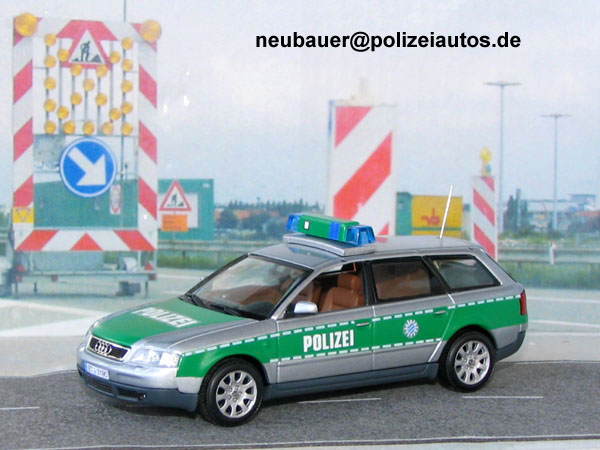 Das Modell wurde vorbildgerecht umlackiert und mit der Aufschrift "POLIZEI", sowie mit den Hoheitszeichen versehen. Wie beim Originalfahrzeug wurde das Modell mit REFLEXSTREIFEN ausgestattet. Desweiteren wurde eine Hella RTK-Blaulichtanlage und eine Funkantenne angebracht. Bei der Blaulichtanlage wurden die Zusatzleuchten nachempfunden. (Eigenbau: Neubauer)