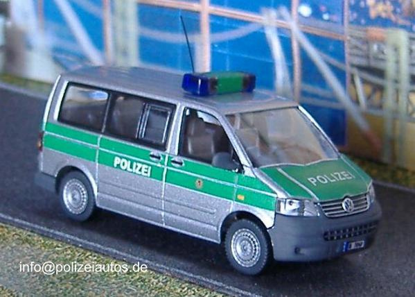 Beim silbernen VW-Werbemodell von Wiking wurden zunächst die Stoßstangen grau lackiert. Nach dem Anbringen der passgenauen Decals wurden der Blaulichtbalken, die Antenne, die Kennzeichen, die Polizei-Schriftzüge und die Polizeisterne angebracht. Umbau: Brückner.