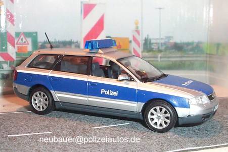 Das Modell wurde, wie das Originalfahrzeug der Autobahnpolizei Brandenburg entsprechend umlackiert. Aufschrift "POLIZEI" wurde am Modell, sowie am umlackierten Blaulichtbalken angebracht. Die Heckklappe wurde mit einer Bake (Sicherheits-Signalstreifen) versehen. (Eigenbau: Neubauer)