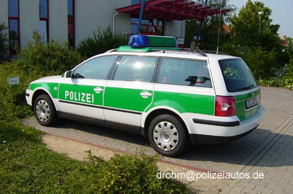 Funkstreifenwagen der Autobahnpolizei in Dessau/BAB 9 in weißer Farbgebung mit grüner Bauchbinde.