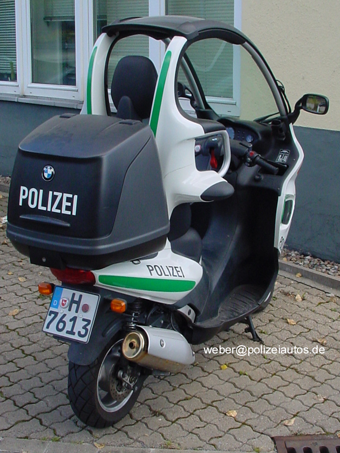 | Beschreibung: | "Überdachter" Motorroller der Polizei Niedersachsen mit 1-Zylinder-Viertaktmotor und 125 cm³ mit 11 kW (15 PS) und Variogetriebe mit Riemenantrieb. Die Höchstgeschwindigkeit liegt bei ca. 106 km/h. Baujahr 2000. |