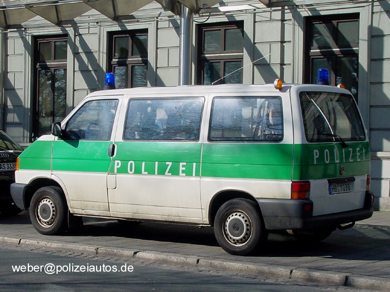 Funkstreifenwagen der Polizei Bremen mit diagonal versetzten Blaulichtern.