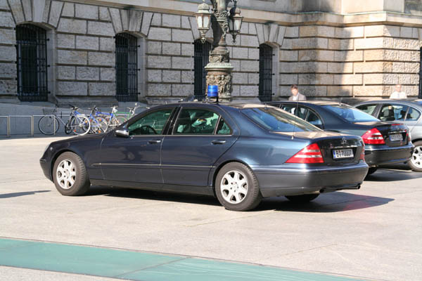 Begleitfahrzeug Mercedes-Benz S-Klasse des Bundeskriminalamtes vor dem Reichstag.
