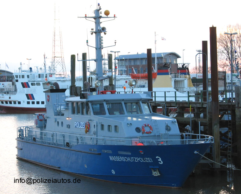 | Beschreibung: | Boot 3 der WSP Niedersachsen im Heimathafen Emden. Technische Daten Bootstyp: Küstenboot Baustoff: Schiffbaustahl Baujahr: 1999 / 2000 Länge: 30,10m Breite: 6,60m Tiefgang: 2,10m Fotos: Frank Lange. Mittlerweile wurde das Boot renoviert und nach Wilhelmshaven umstationiert. |