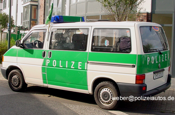 Halbgruppenkraftwagen der Bereitschaftspolizei Schleswig-Holstein mit "grüner Flagge" für die Kolonnenfahrt.