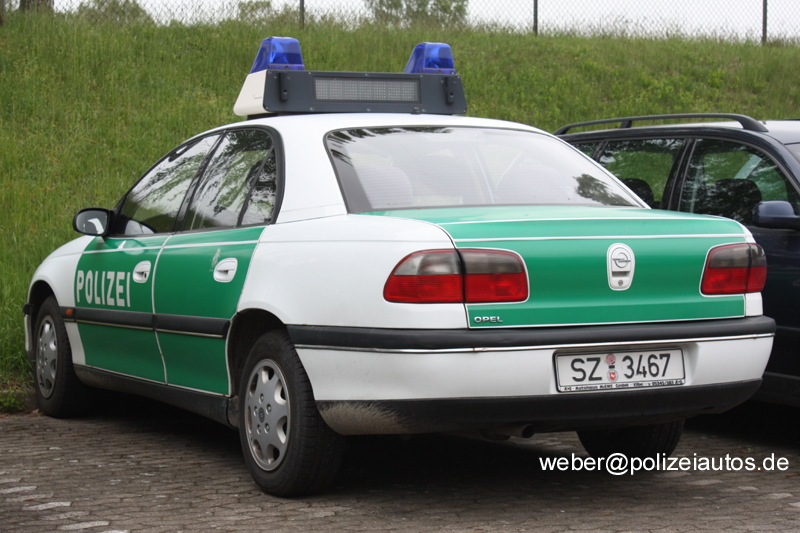 Funkstreifenwagen mit mehrfach geteilter Motorhaubenbeklebung