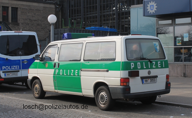 | Beschreibung: | Halbgruppenkraftwagen (HGruKW) der Hamburger Bereitschaftspolizei, ausgestattet mit 2 Schiebetüren und Anhaltesignalgeber am Heck. Im Gegensatz zu diesem T4 LR mit größerem Polizeischriftzug auf der Hecklappe. |
