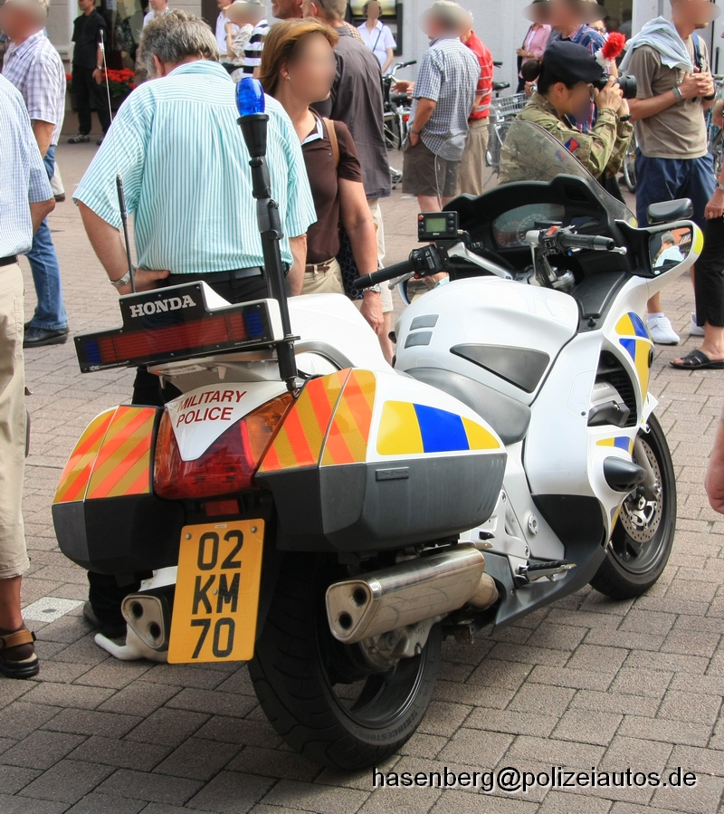 Streifenmotorrad der Britischen Militärpolizei in Deutschland.
