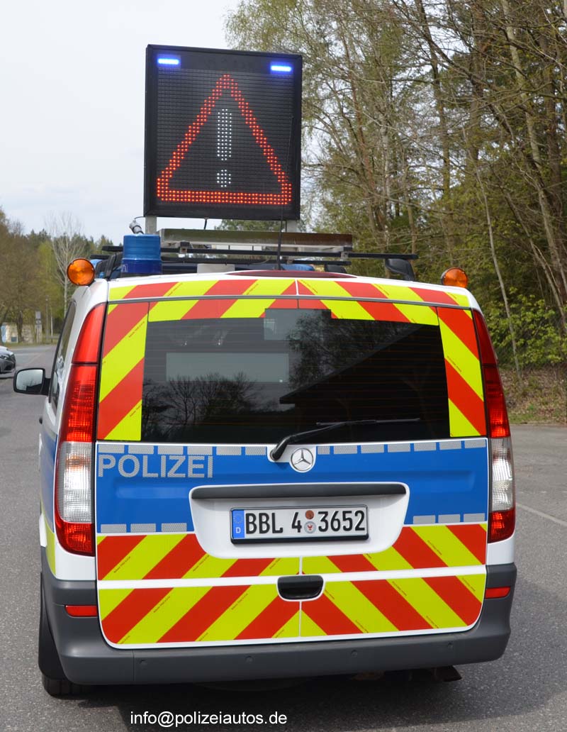 | Beschreibung: | Funkstreifenwagen der Autobahnpolizei Brandenburg mit aufgestellter Wechselverkehrszeichenanlage der Fa. Nissen. Fotos: Ingo Hoffmann |