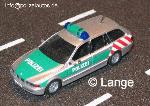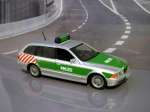 BMW 525d Touring als Einsatzwagen Autobahn (Ewa BAB) der Berliner Autobahnpolizei mit ausziehbarem Geräteträger, großflächiger rot/weißer Warnmarkierung nach DIN an dem Seiten und im gesamten Heckbereich, zusätzlichen reflektierenden Längsstreifen unterhalb der Seitenfenster bis zur Front und unterhalb der Zierleiste, Anhängerkupplung, Geschwindigkeitsmessgerät Police Pilot, 10 Leitkegel BAB (groß), 8 Nissenleuchten, Ölbindemittel, Abschleppstange, Brecheisen, Handscheinwerfer und diversem anderen Ausrüstungsmaterial. |