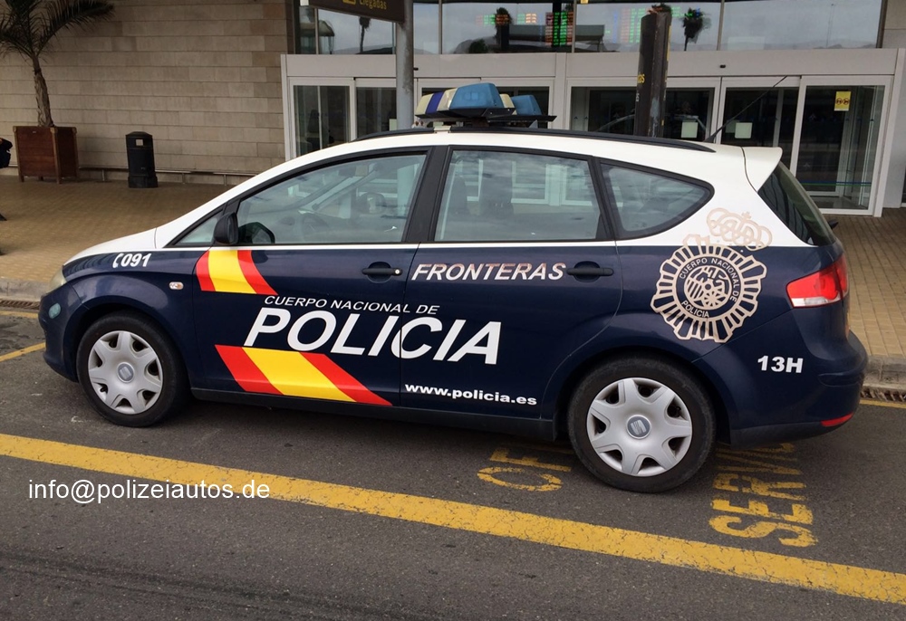 | Beschreibung: | Funkstreifenwagen der Policia Nacional, hier mit zusätzlicher Aufschrift: FRONTERAS (Grenzpolizei), abgelichtet am Flughafen von Puerto del Rosario auf Fuerteventura. |