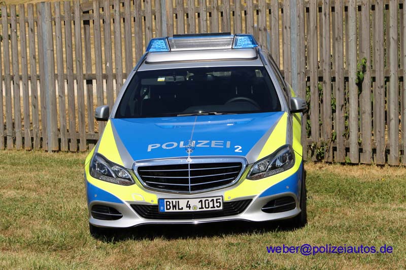 Führungsfahrzeug (Mercedes-Benz E 220) der Bereitschaftspolizei Baden-Württemberg in der VESBA-Ausführung.