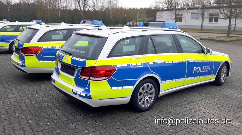 mit zusätzlicher leuchtgelber Markierung und auffälliger Gestaltung am Heck gem. dem Projekt VESBA (Verbesserte Erkennbarkeit von Streifenfahrzeugen auf Bundesautobahnen und autobahnähnlich ausgebauten Straßen). Die Bilder 3+4 zeigen mehrere dieser Funkstreifenwagen zur Übergabe aufgestellt. Fotos und Infos: Michael Schüler, Zentraldienst der Polizei Brandenburg |