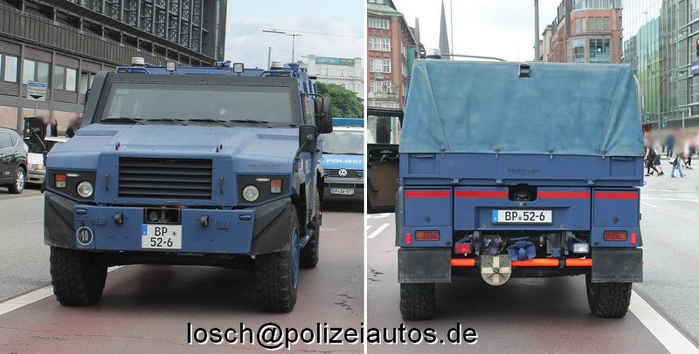 | Beschreibung: | Geschützter Sonderwagen der Bundespolizei, eingesetzt ab Sommer 2017. 2011 beschaffte die Bundespolizei für den Afghanistan-Einsatz 10 dieser geschützten Fahrzeuge für den Einsatz in unsicherem Gelände. Hersteller ist die Schweizer Firma General Dynamics European Land Systems Nachdem 2015 kein Bedarf für den weiteren Einsatz dieser Fahrzeuge bestand, wurden sie zurück nach Deutschland überführt und umgerüstet. Neben der neuen Lackierung wurden die Fahrzeuge mit Gaps, Schriftzügen, Sondersignalanlagen und Funk versehen. Zukünftig werden die Eagle IV an deutschen Flughäfen die dort bisher eingesetzten SW4 ersetzen. |