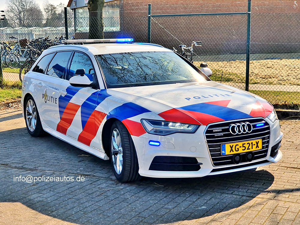 Funkstreifenwagen der niederländischen Polizei im breiteren Streifendesign.