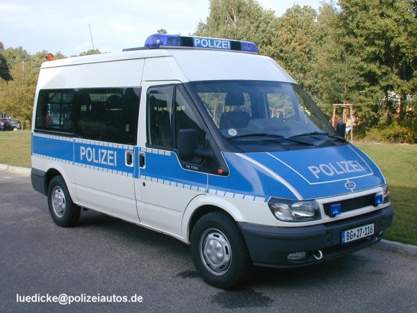 | Beschreibung: | Bundeseinheitlicher Halbgruppenkraftwagen (HGrukw, KFZ 40a-1). Die Fahrzeuge wurden zunächst (2002 - 2003) mit grün-weißer, teilweise vollflächiger Beklebung, dann mit grün-weißer Bauchbinde (2004) und ab 2005 mit blau-weißer Bauchbinde ausgeliefert (hier ohne BPOL-Stern auf der Tür). Von 2002 - 2004 wurde der Ford Transit vom Typ 125 T330 (92kW, 125PS) beschafft, die ab 2005 beschafften Fahrzeug sind vom Typ 115 T330 (85kw, 115PS) und somit schwächer motorisiert. |