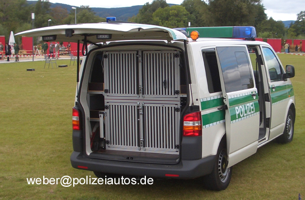 Diensthundeführerfahrzeug der Polizei Sachsen-Anhalt mit vier Hundeboxen.