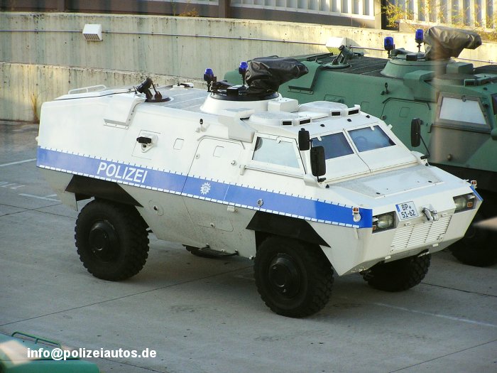 | Beschreibung: | Geschützter Sonderwagen der Bundespolizei in neuer Farbgebung und mit Reflexstreifen. Ungewöhnlich an einem Sonderwagen 4 sind die Aufsteckblaulichter vom Typ Hella Rotaflex. Vor der Umlackierung waren, wie an allen SW 4, zwei Hella KLJ 60 installiert. 1.Foto: Andreas Reißig |