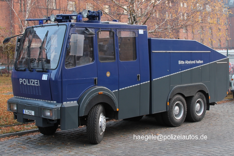 | Beschreibung: | Wasserwerfer 9000 (WaWe 9) in neuer Lackierung gemäß der Farbstudie Sonderfahrzeuge von Polizeiautos.de und mit nunmehr endgültiger Beschriftung an der Front (Schriftzug POLIZEI in Arial) sowie taktischen Kennungen (1T). |