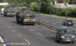 | Beschreibung: | Begleitung von zwei Schwerlasttransportern der Bundeswehr (Elefant), jeweils beladen mit einem Schützenpanzer (Marder), durch die Feldjäger; hinten erfolgt die Absicherung mit einem sog. BF 3 (Fotos: Andreas Jackert). |